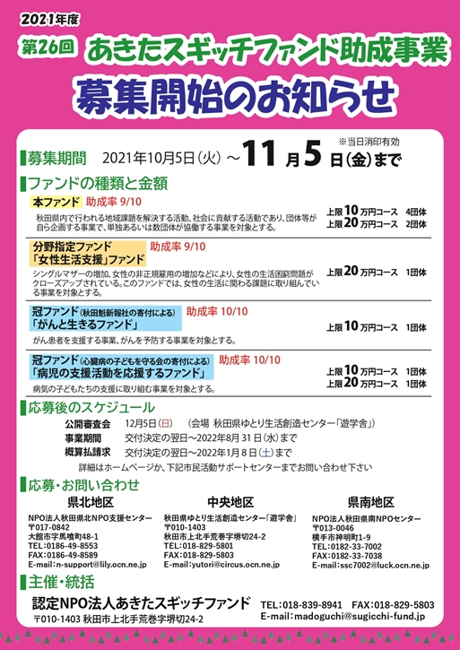 秋田県の地域課題解決に取り組む団体を支援するファンドです
